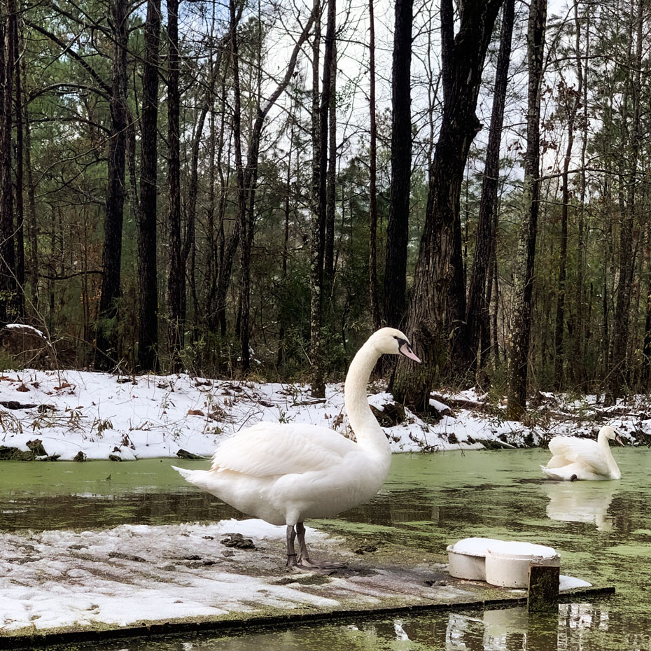 Today we acquired two of the most beautiful additions to the farm yet. A pair of Mute Swans. These beautiful creatures mate for life and reach breeding maturity around age three. These two are only about a year old and have settled in nicely to the pond. They eat aquatic plants, bugs, and other creepy crawlies and love eating the covering of duck weed that one of the ponds has in abundance! They also get a daily helping of high protein layer feed.